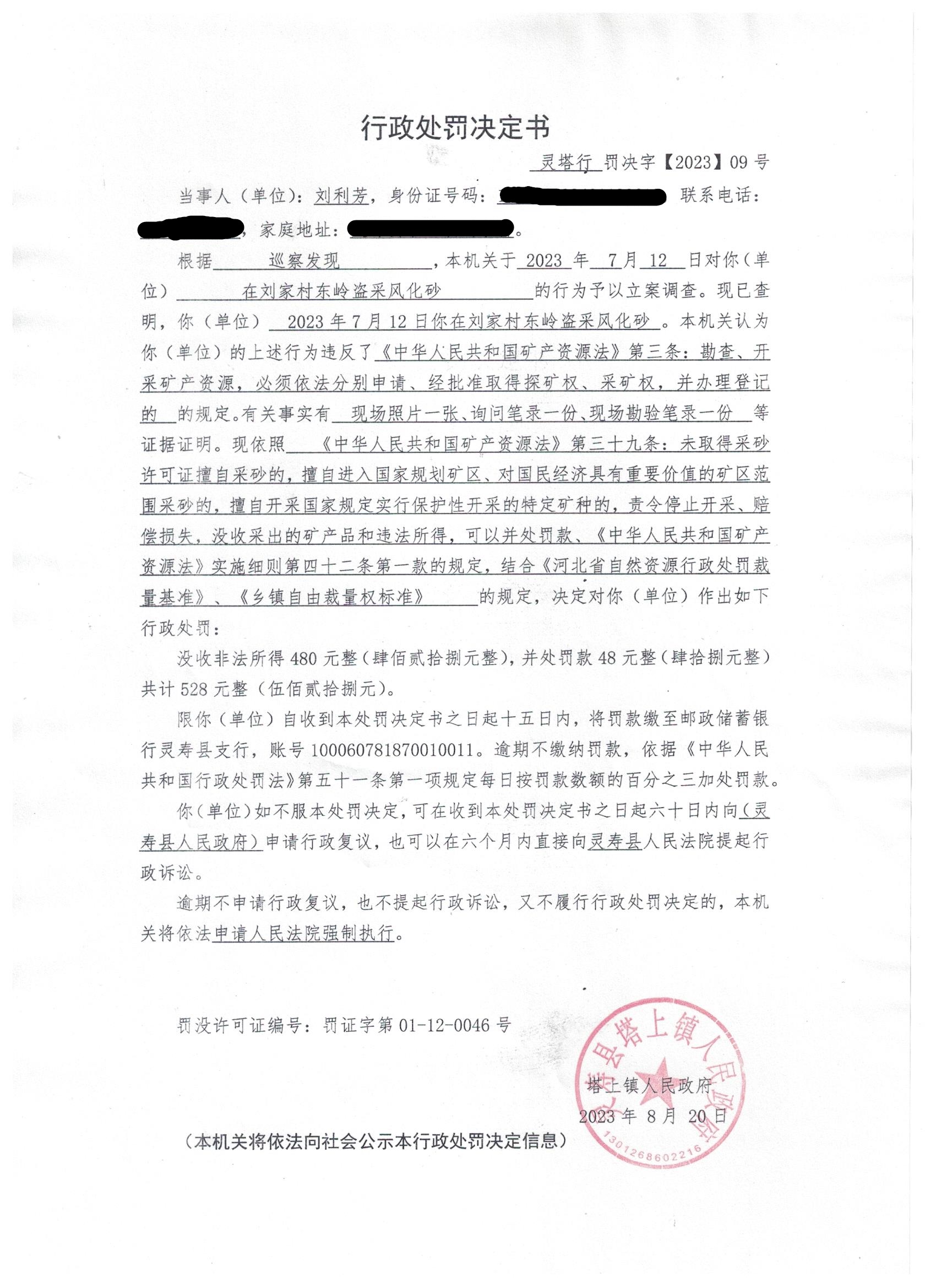 塔上镇综合行政执法队行政处罚决定书灵塔行罚决字【2023】09号