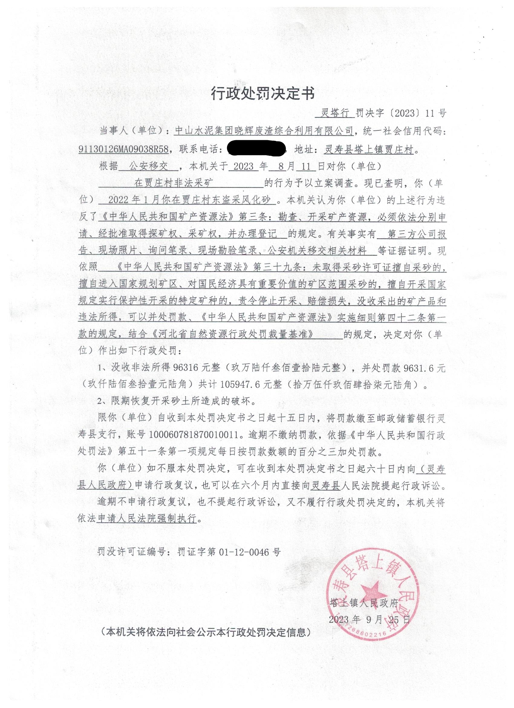塔上镇综合行政执法队行政处罚决定书灵塔行罚决字【2023】11号