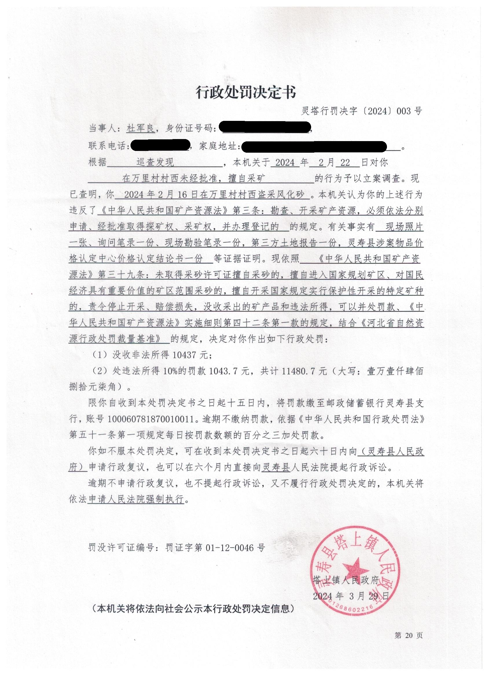 塔上镇综合行政执法队行政处罚决定书灵塔行罚决字【2024】003号