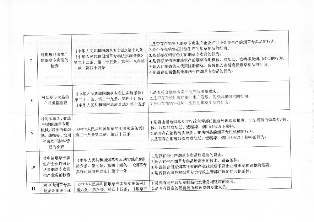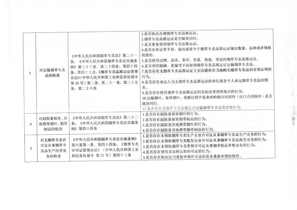 灵寿县烟草专卖涉企行政检查事项及标准(烟草专卖品)