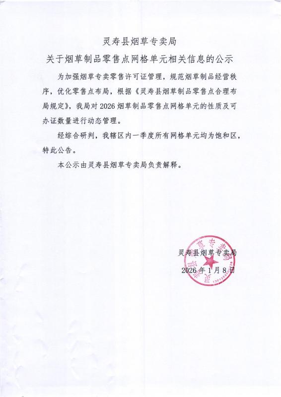 灵寿县烟草专卖局关于烟草制品零售点网格单元相关信息的公示