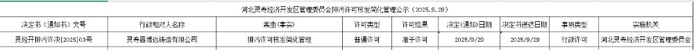 河北灵寿经济开发区管理委员会排污许可核发简化管理公示