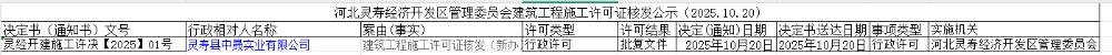 河北灵寿经济开发区管理委员会建筑工程施工许可证核发公示(2025.10.20)