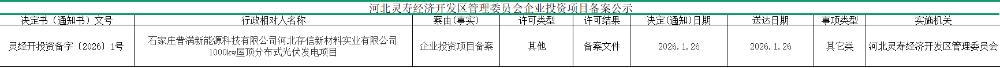 河北灵寿经济开发区管理委员会企业投资项目备案公示