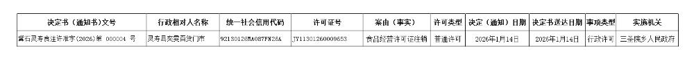三圣院乡人民政府食品经营许可证办理结果公示