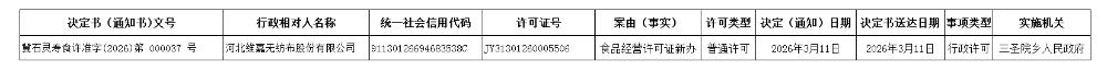 三圣院乡人民政府食品经营许可证办理结果公示