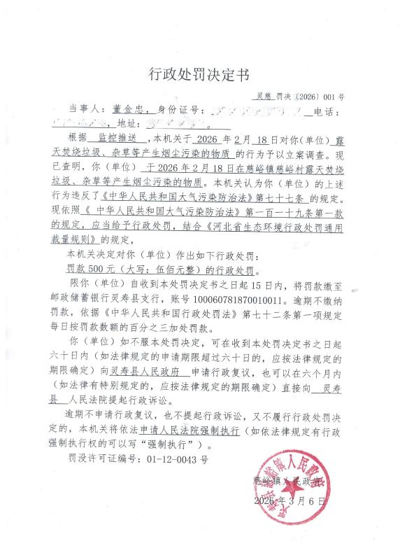 慈峪镇人民政府行政处罚决定书灵慈罚决〔2026〕001号