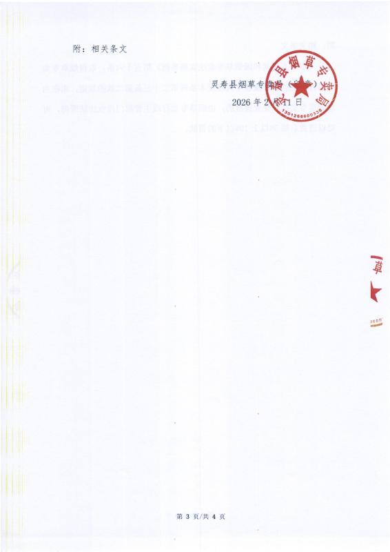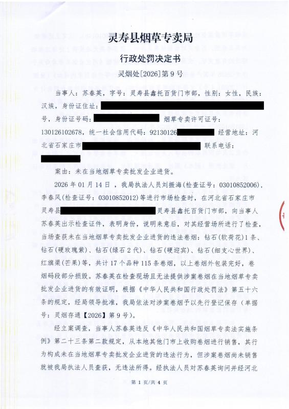 灵寿县烟草专卖局行政处罚决定公示 灵烟处【2026】第9号