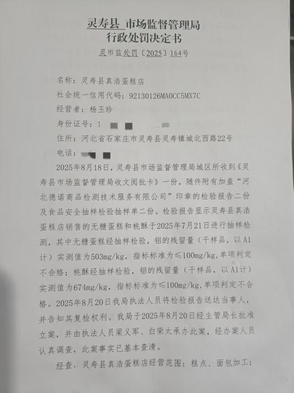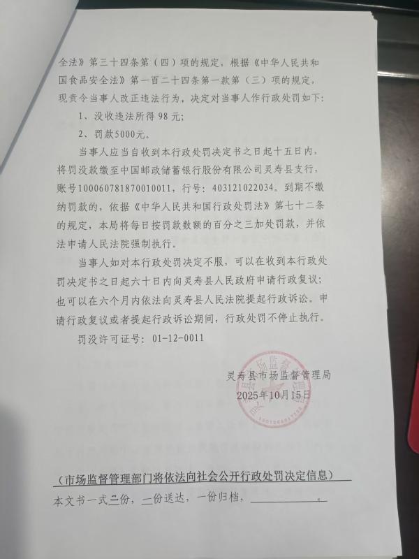 灵寿县市场监督管理局行政处罚公示灵市监处罚[2025]164号