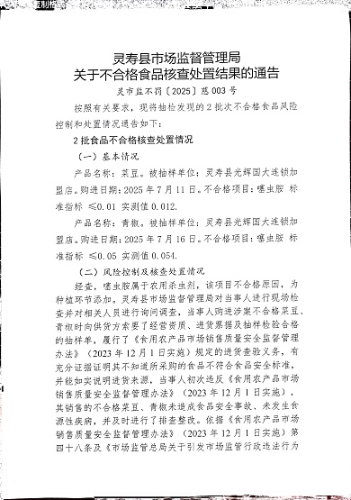 关于不合格食品核查处置结果的通告灵市监不罚【2025】慈003号