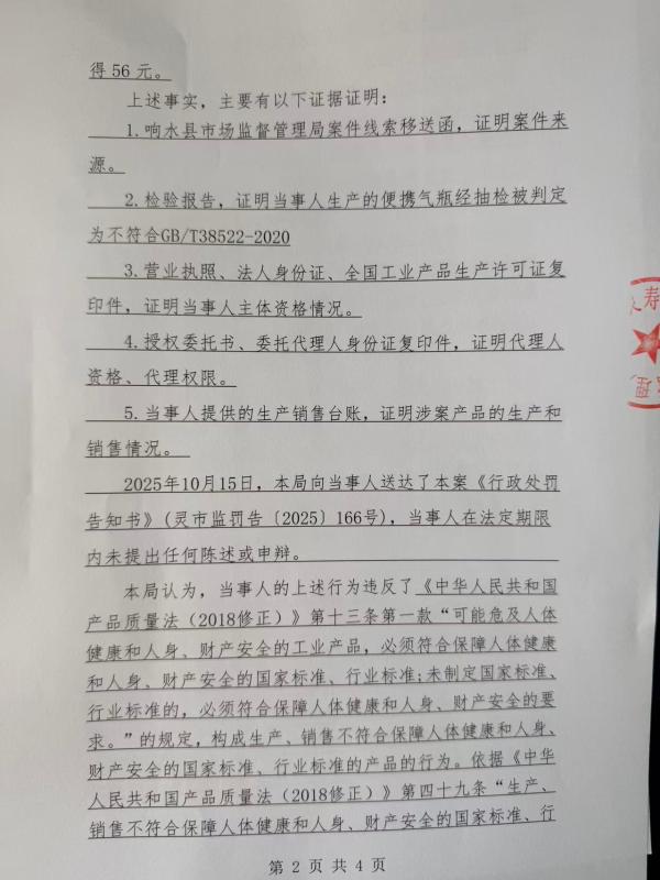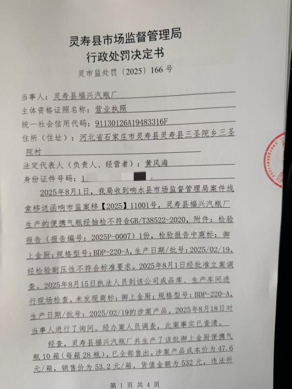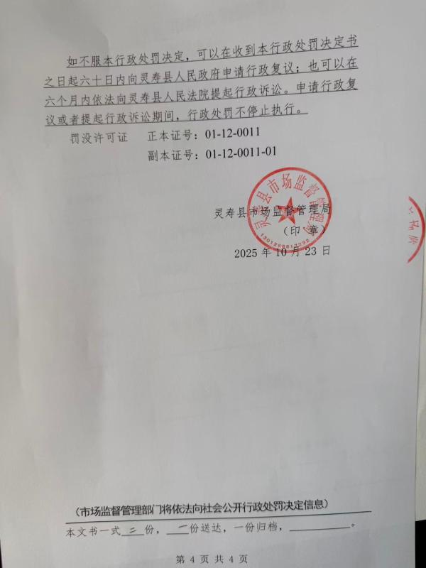 灵寿县市场监督管理局行政处罚公示灵市监处罚【2025】166号