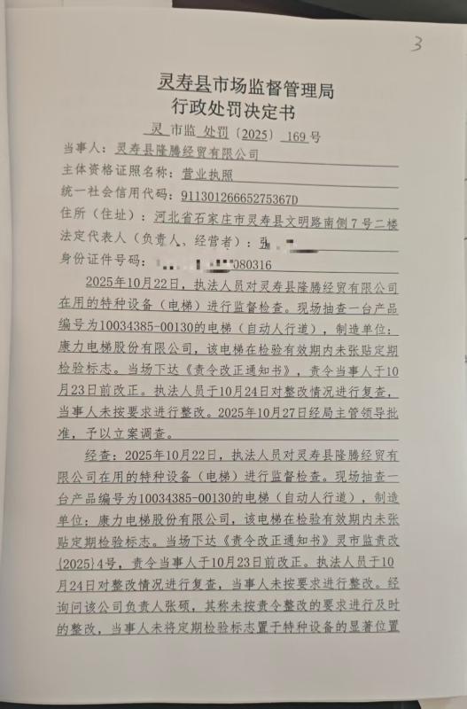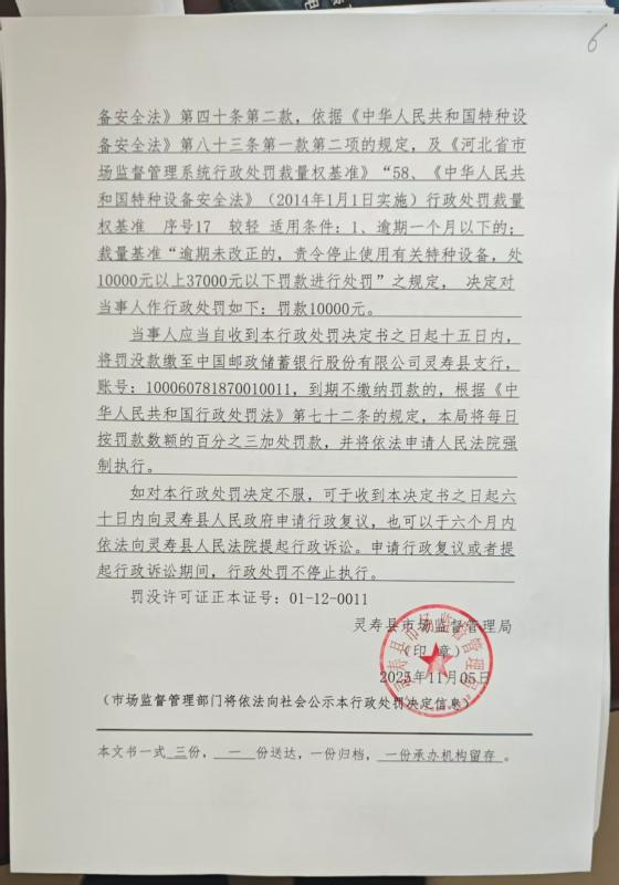 灵寿县市场监督管理局行政处罚公示灵市监处罚【2025】169号