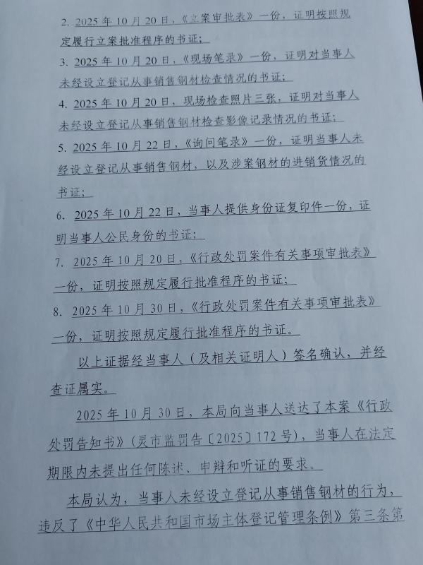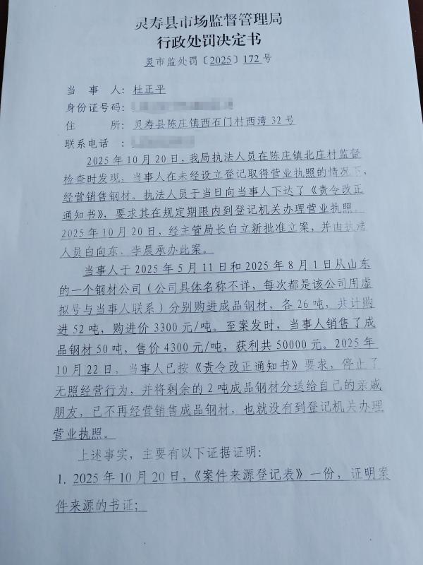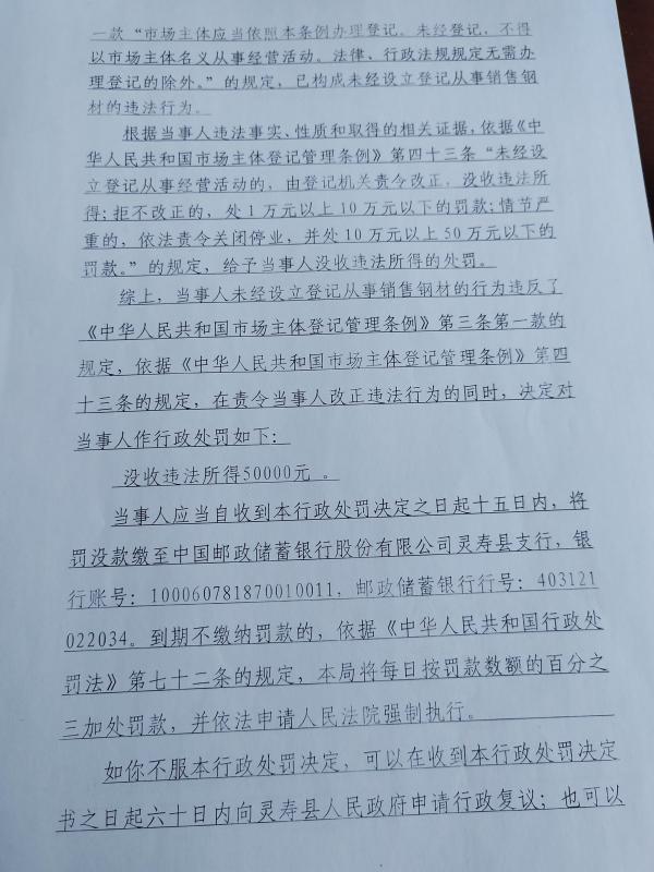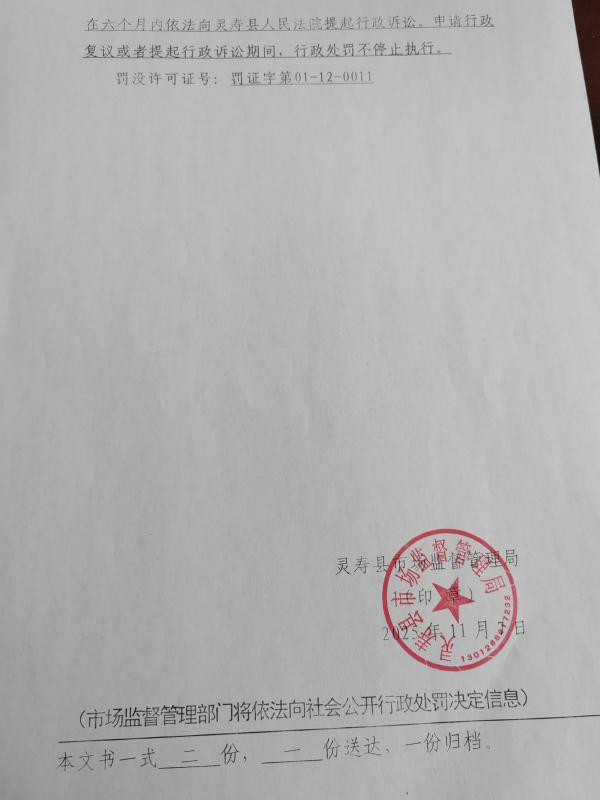 灵寿县市场监督管理局行政处罚公示灵市监处罚【2025】172号
