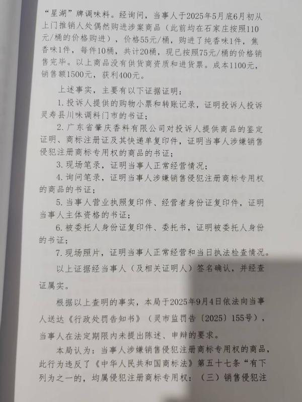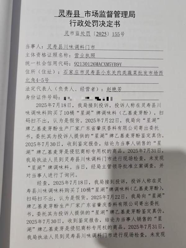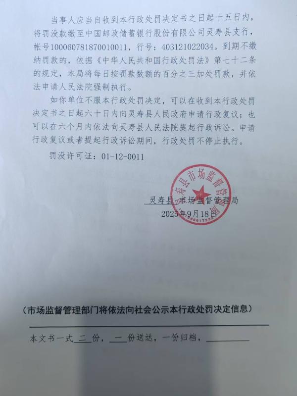 灵寿县市场监督管理局行政处罚公示灵市监处罚[2025]155号