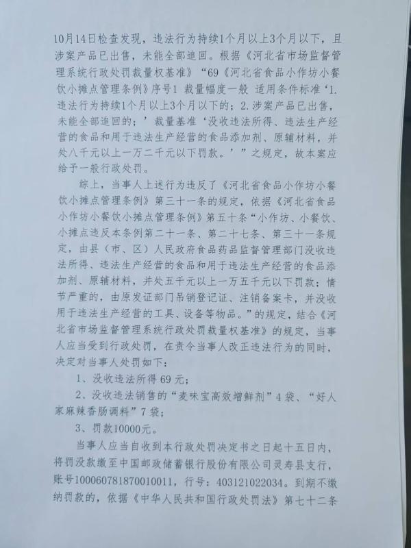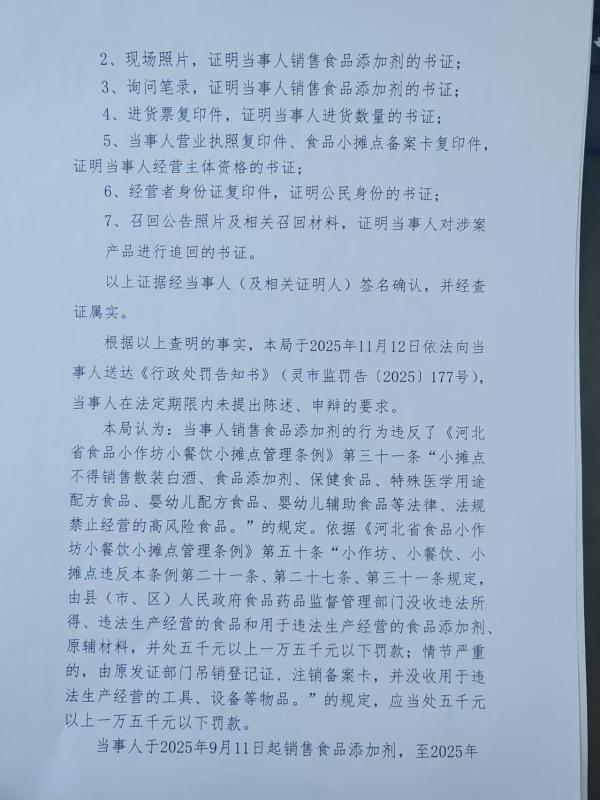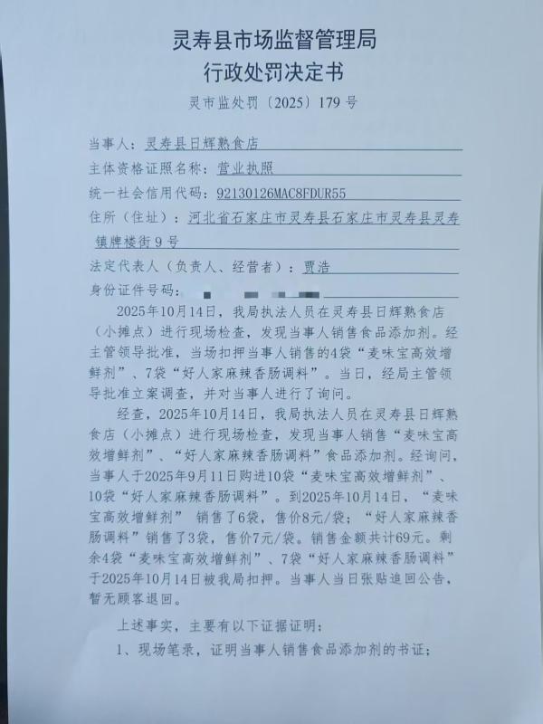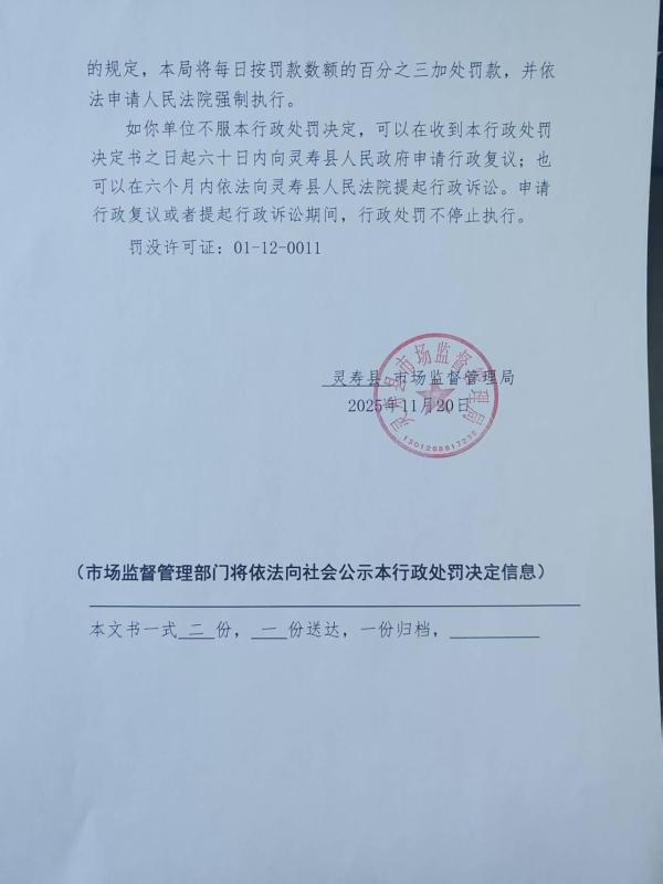 灵寿县市场监督管理局行政处罚公示灵市监处罚[2025]179号