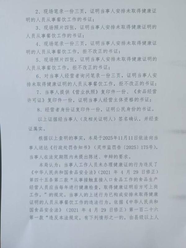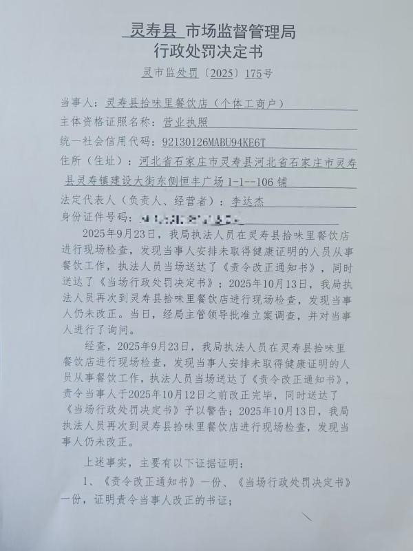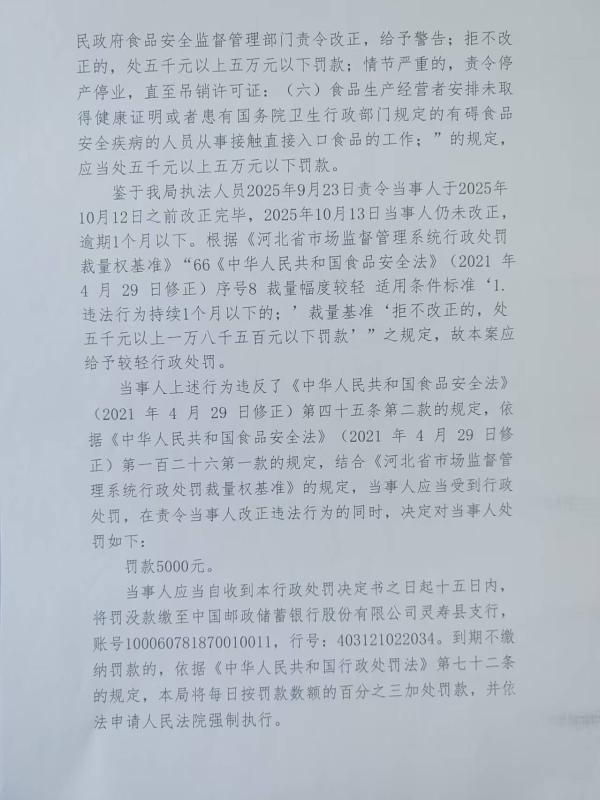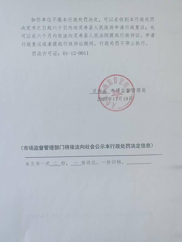 灵寿县市场监督管理局行政处罚公示灵市监处罚[2025]175号