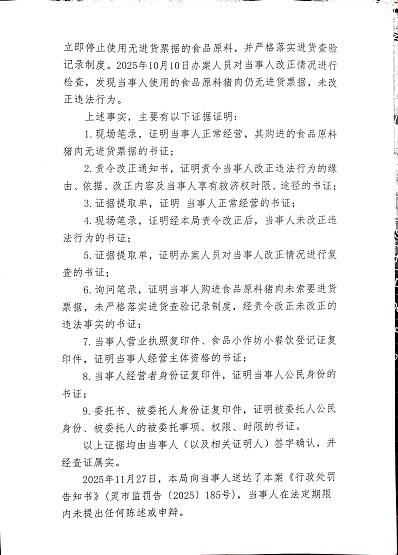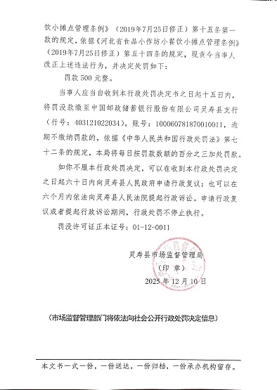 灵寿县市场监督管理局行政处罚公示灵市监处罚【2025】185号