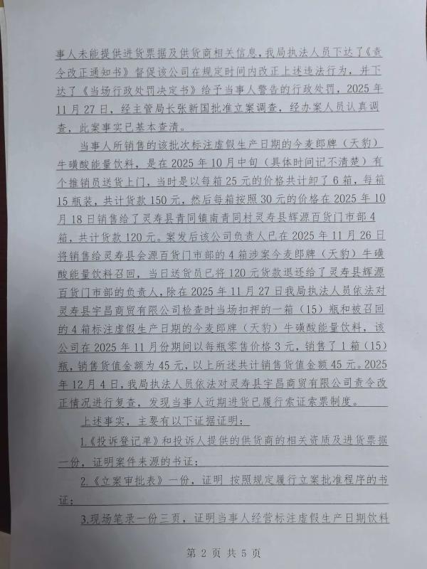 灵寿县市场监督管理局行政处罚公示灵市监处罚【2026】13号