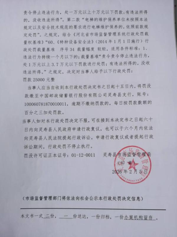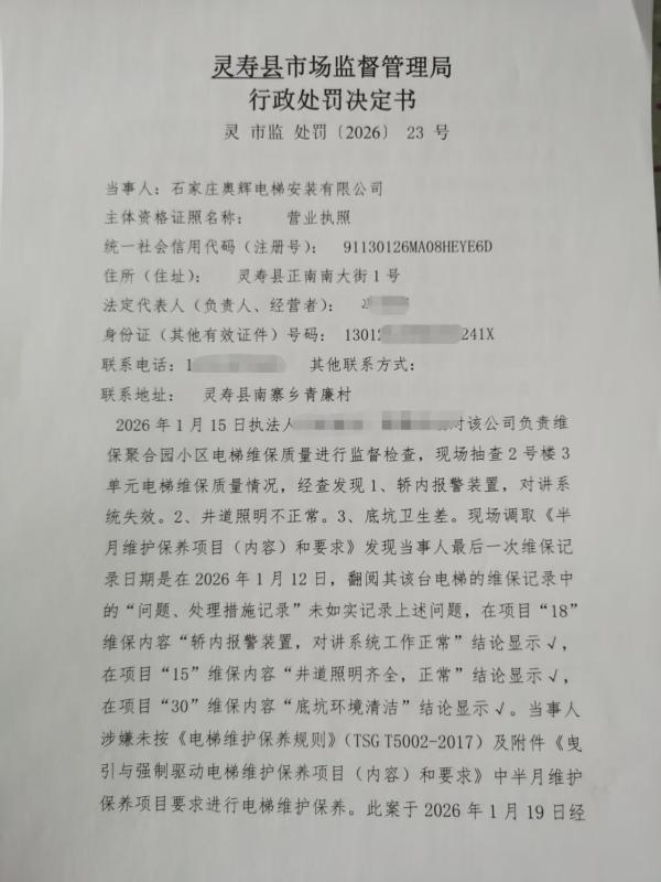 灵寿县市场监督管理局行政处罚公示灵市监处罚【2026】23号