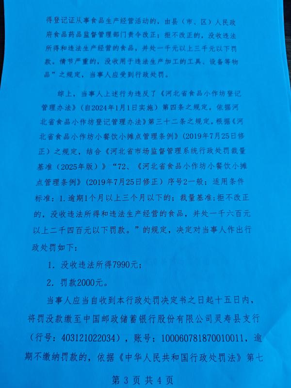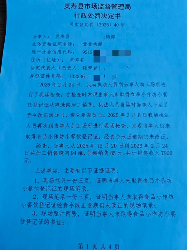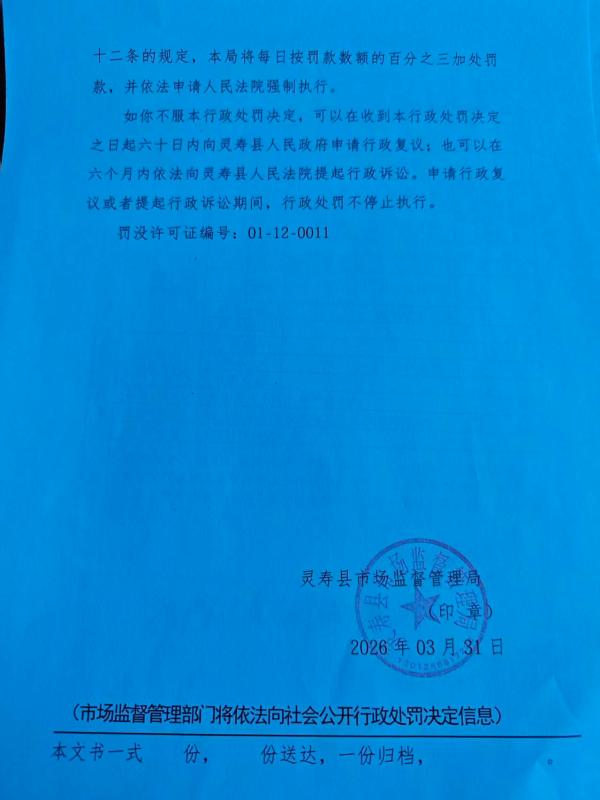 灵寿县市场监督管理局行政处罚公示灵市监处罚(2026)40号
