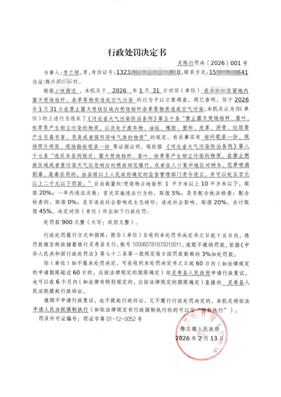 陈庄镇人民政府行政处罚决定书〔2026〕001号