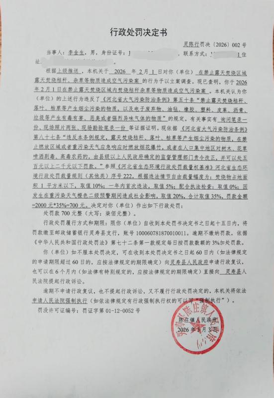 陈庄镇人民政府行政处罚决定书〔2026〕002号