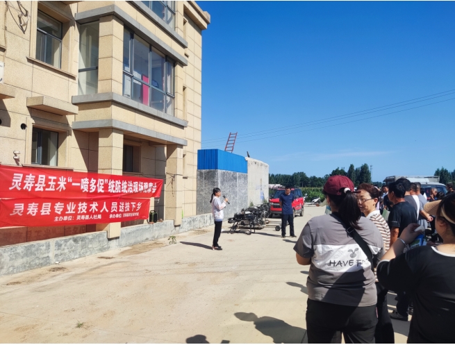 我县玉米已进入灌浆期,也是玉米病虫害高发期,特别是玉米南方锈病,8月中旬至今连续降雨导致爆发流行的风险较高。为进一步加强玉米后期病虫害防控,全力夺取秋粮丰收,8月28日,县农业农村局在灵寿镇孟托村召开玉米“一喷多促”统防统治现场观摩会。局相关领导及技术人员,各乡镇主管副职、各村级技术员、家庭农场、种植大户,统防统治服务组织100余人参加了现场观摩会。