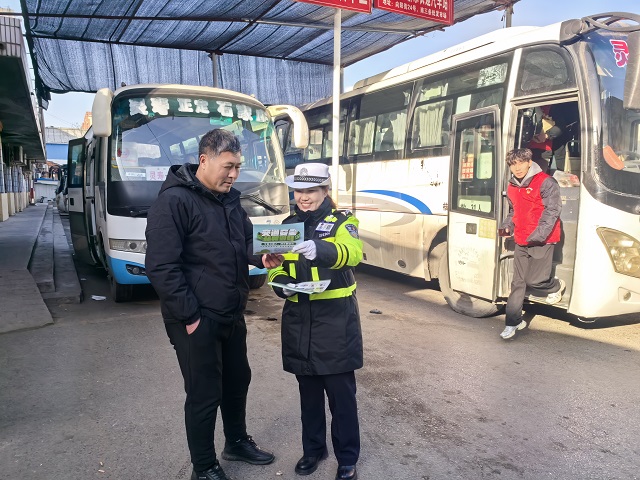 宣传民警为春运司乘人员、乘客发放了春运交通安全年历、交通安全宣传彩页,并讲解了春运交通安全小常识,提醒他们在乘坐客运车辆时一定要系好安全带,不随身携带具有易燃、易爆的物品,杜绝乘坐“黑客车”,杜绝乘坐超员车,以及春节临近走亲访友时自觉杜绝酒后驾车的危险行为,自觉抵制各类不文明交通违法行为。