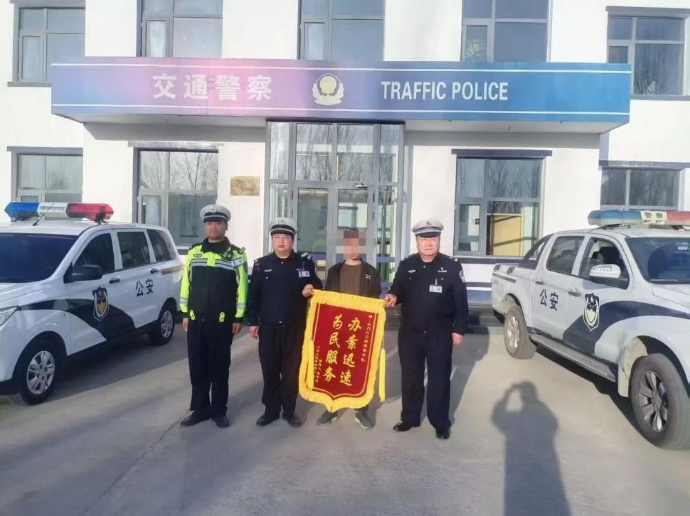 3月24日上午,靳先生带着两面“警民一家亲,遇难见真情”“尽人民卫士职责,保一方百姓平安”的锦旗来到交通管理大队,对大队民辅警表示诚挚感谢。