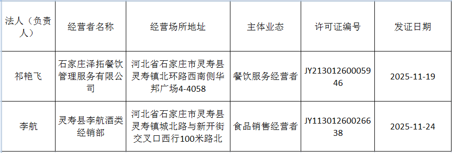 灵寿镇人民政府食品经营许可备案公示2025年11月25日