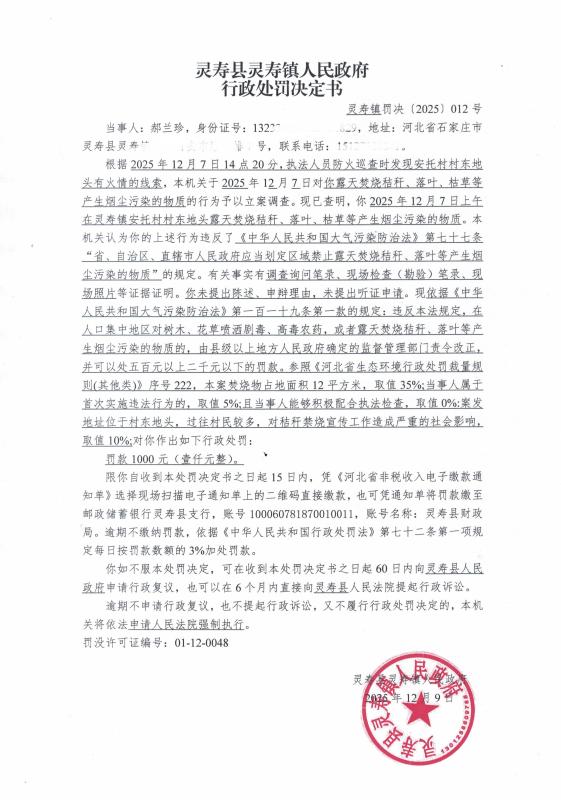 灵寿镇人民政府行政处罚决定书 【2025】012号