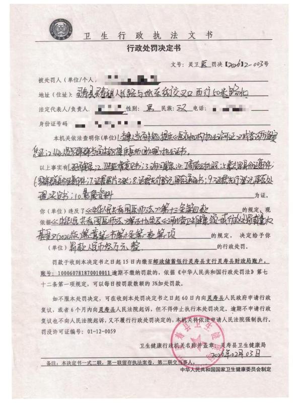 灵寿县卫生健康局行政处罚决定书灵卫医罚决【2026】2-003