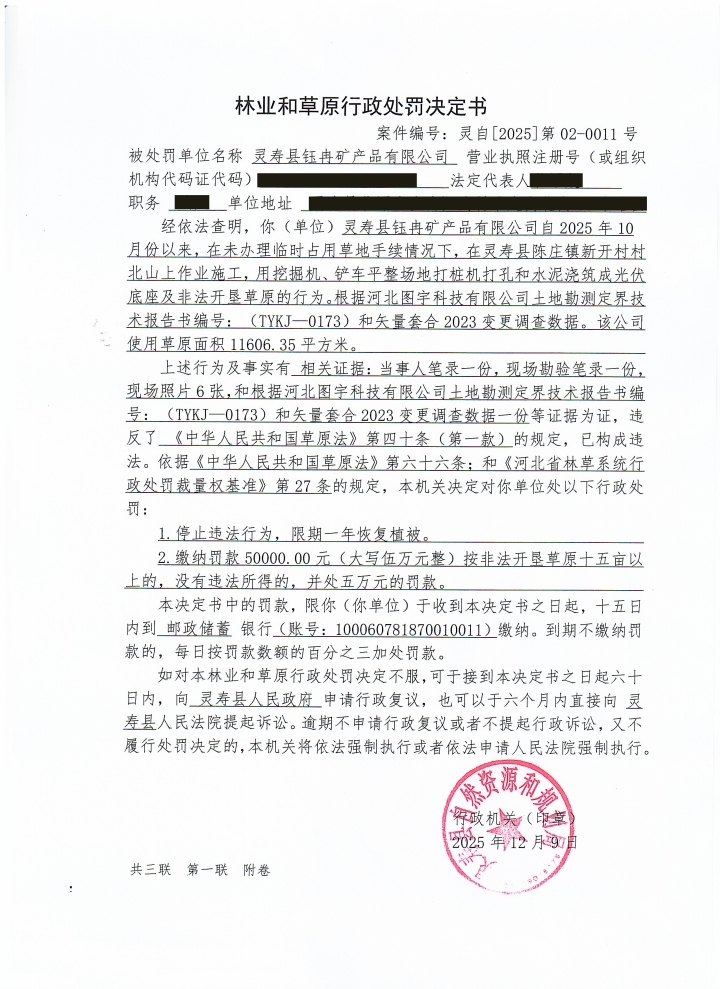 灵寿县林业和草原行政处罚决定书案件编号:灵自[2025]第02-0011号