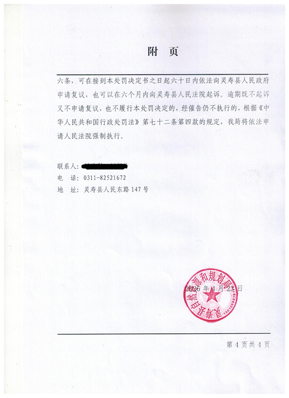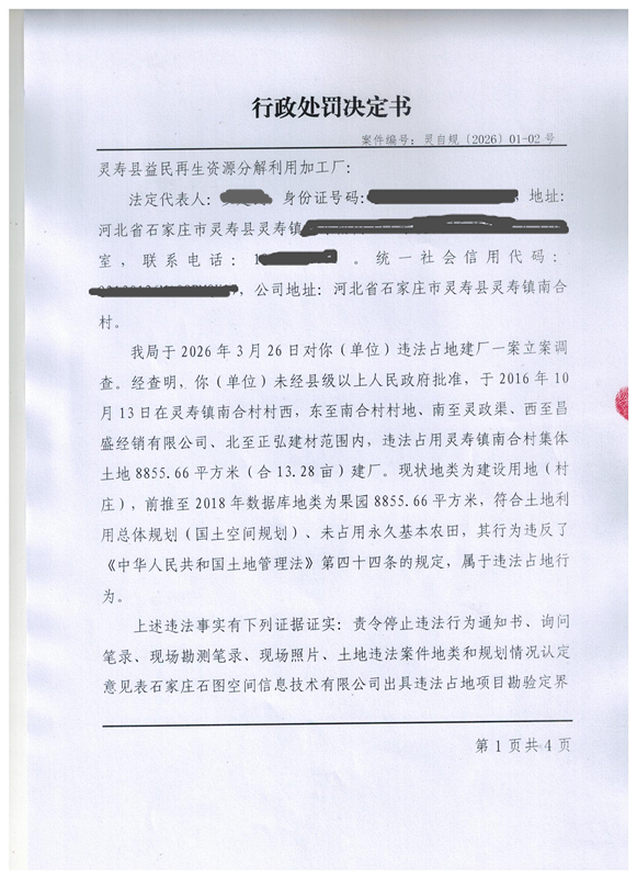 灵寿县行政处罚决定书案件编号:灵自规(2026)第01-02号