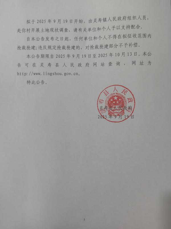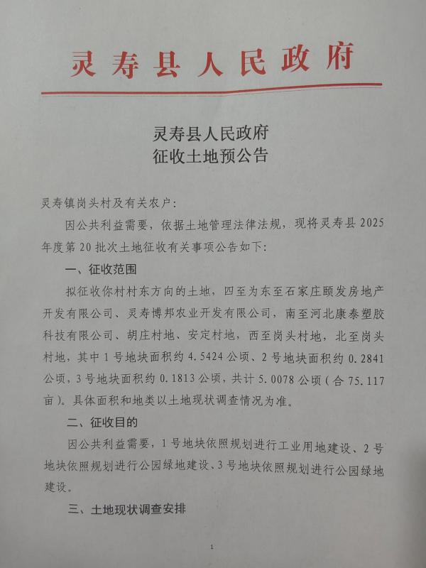 灵寿县2025年度第20批次灵寿镇岗头村征收土地预公告