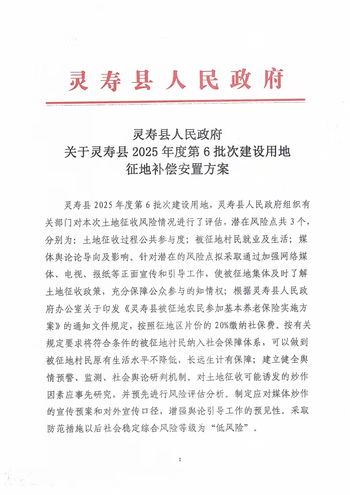 关于灵寿县2025年度第6批次建设用地征地补偿安置方案