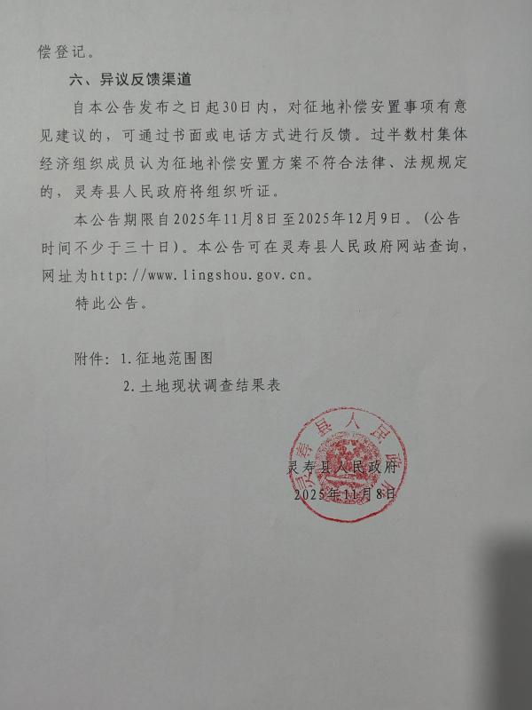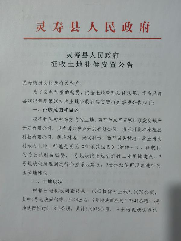 关于灵寿县2025年度第20批次灵寿镇岗头村征收土地补偿安置公告