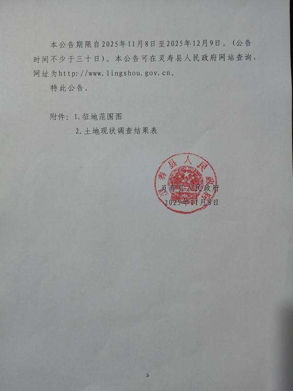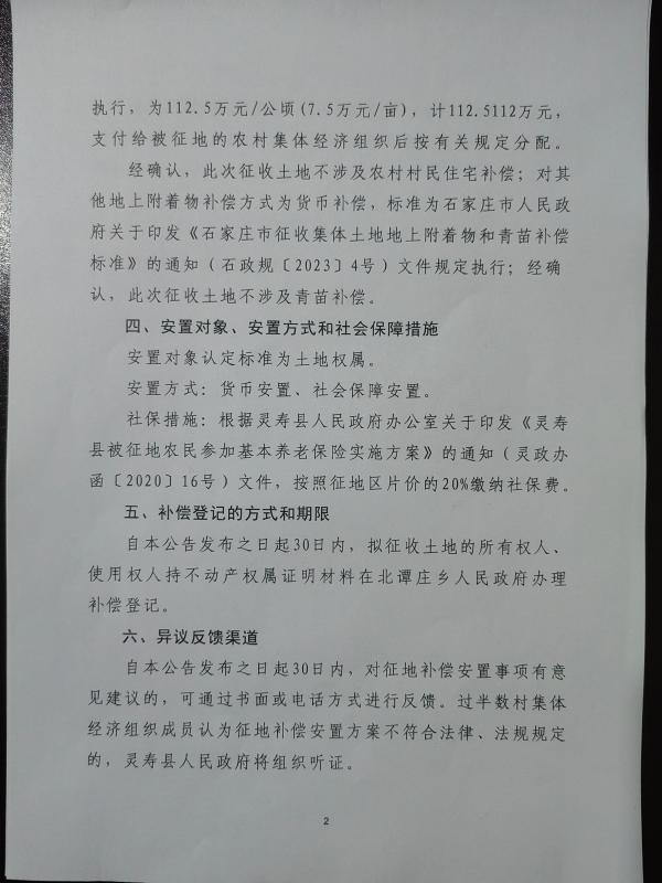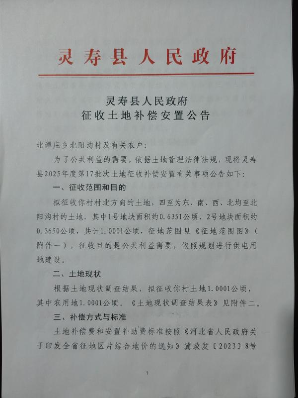 关于灵寿县2025年度第17批次北谭庄乡北阳沟村征收土地补偿安置公告