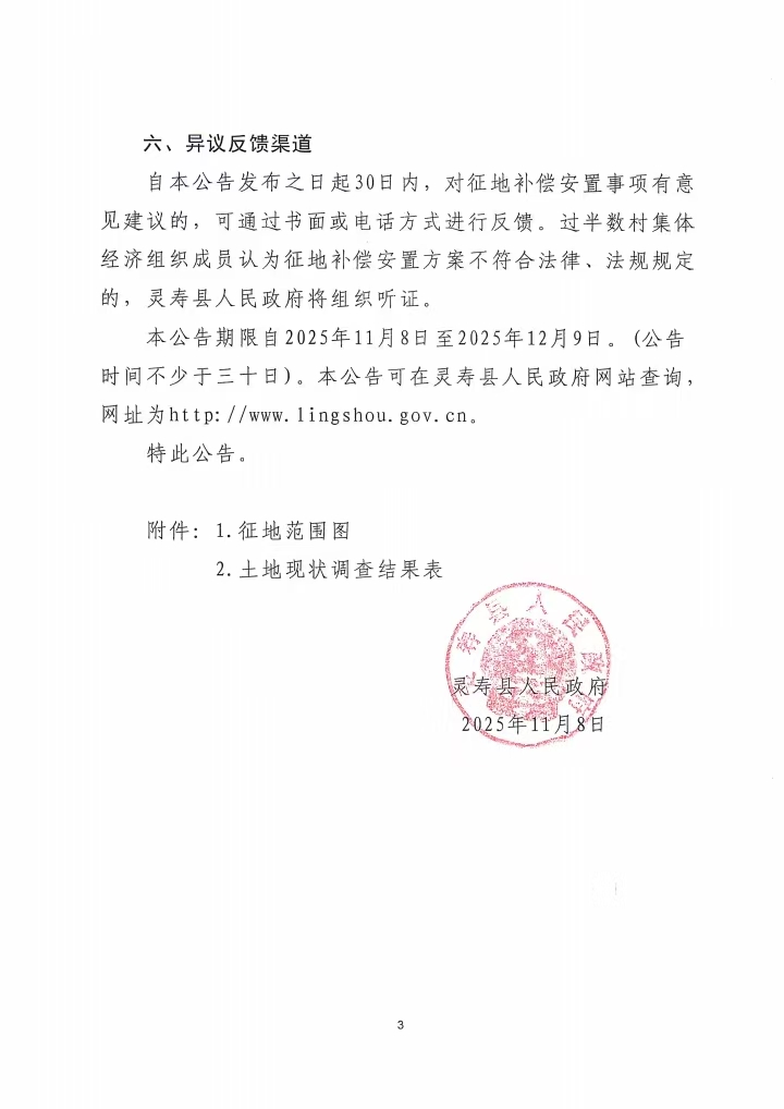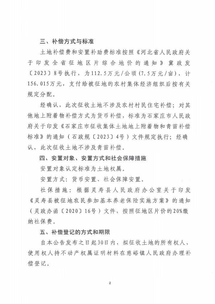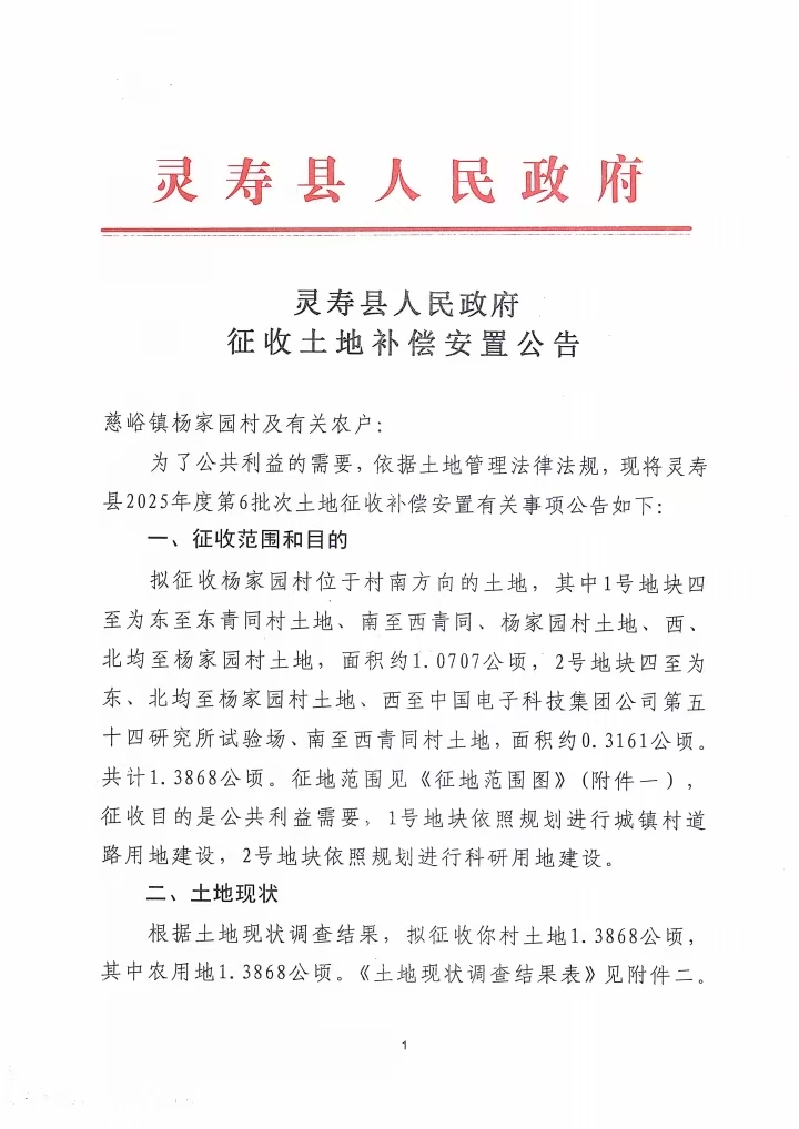 关于灵寿县2025年度第6批次慈峪镇杨家园村征收土地补偿安置公告