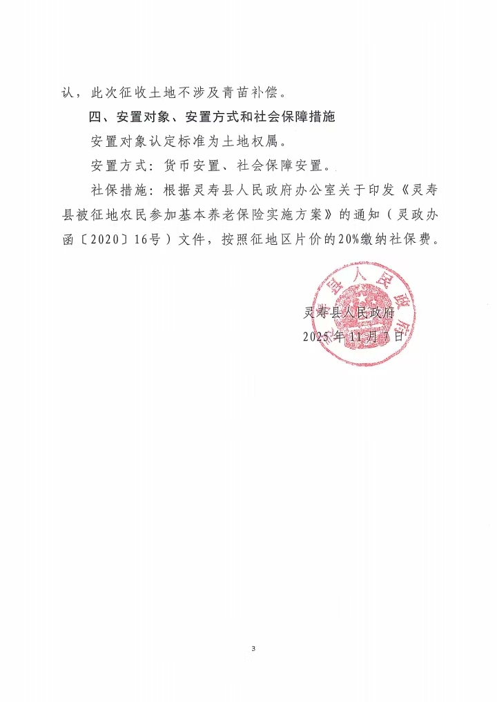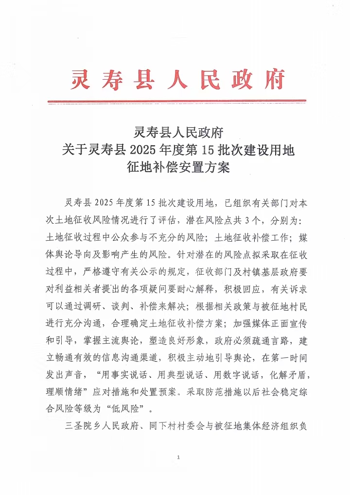 关于灵寿县2025年度第15批次建设用地征地补偿安置方案
