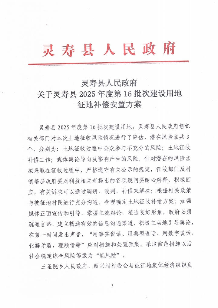 关于灵寿县2025年度第16批次建设用地征地补偿安置方案