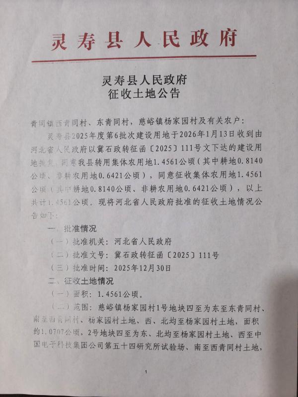 关于灵寿县2025年第6批次青同镇西青同村、东青同村、慈峪镇杨家园村征收土地公告和灵寿县2025年度6批次建设用地的批复