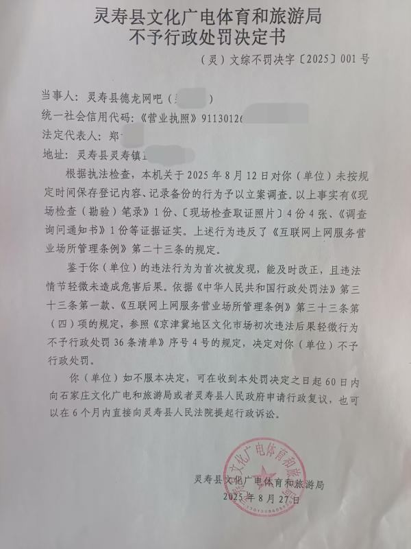 灵寿县文化广电体育和旅游局不予行政处罚决定书(灵)文综不罚决字〔2025〕001号