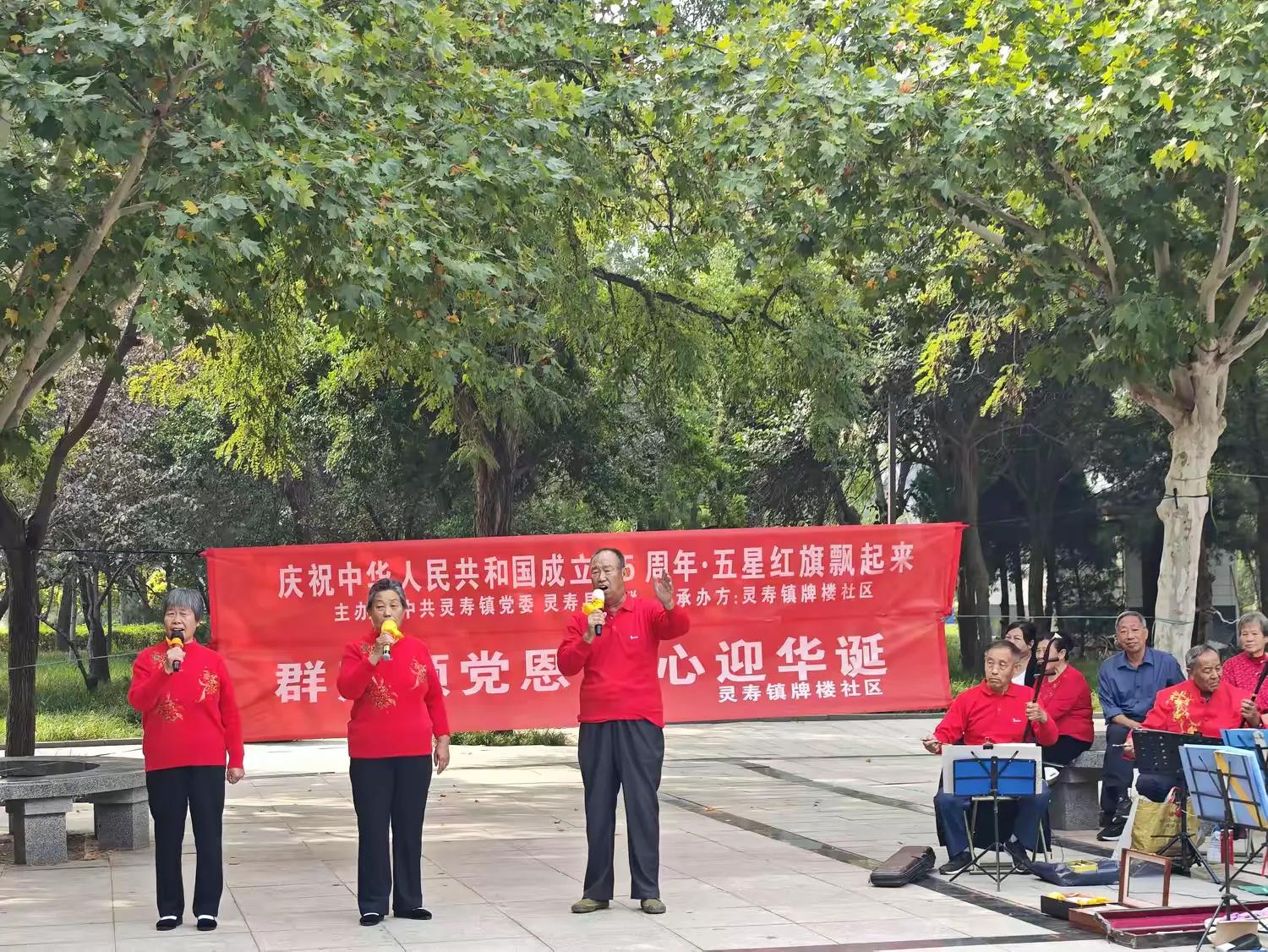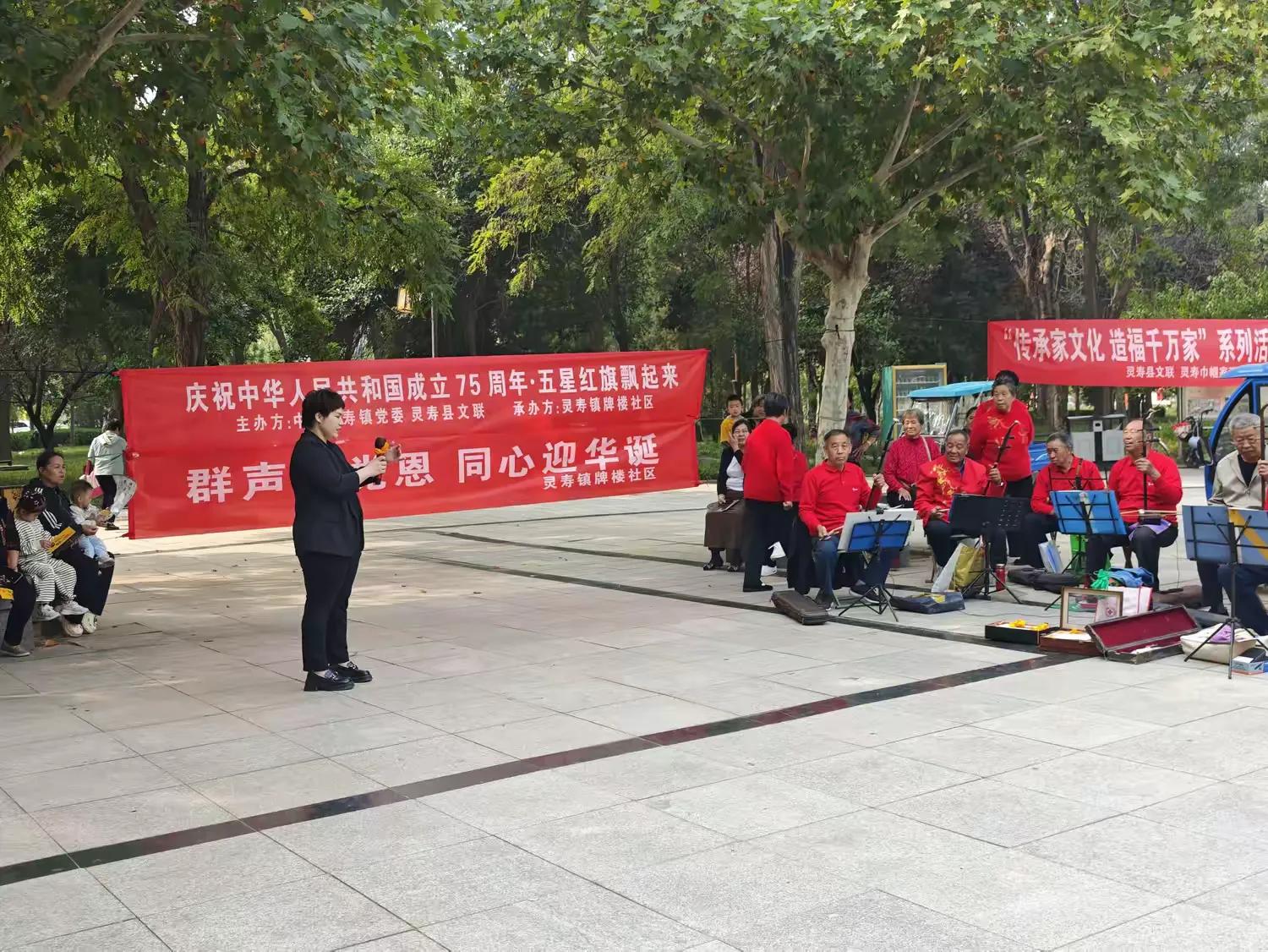 9月25日,由中共灵寿镇党委、灵寿县文联、牌楼社区在石牌楼广场举办“庆祝中华人民共和国成立75周年·五星红旗飘起来”主题活动。