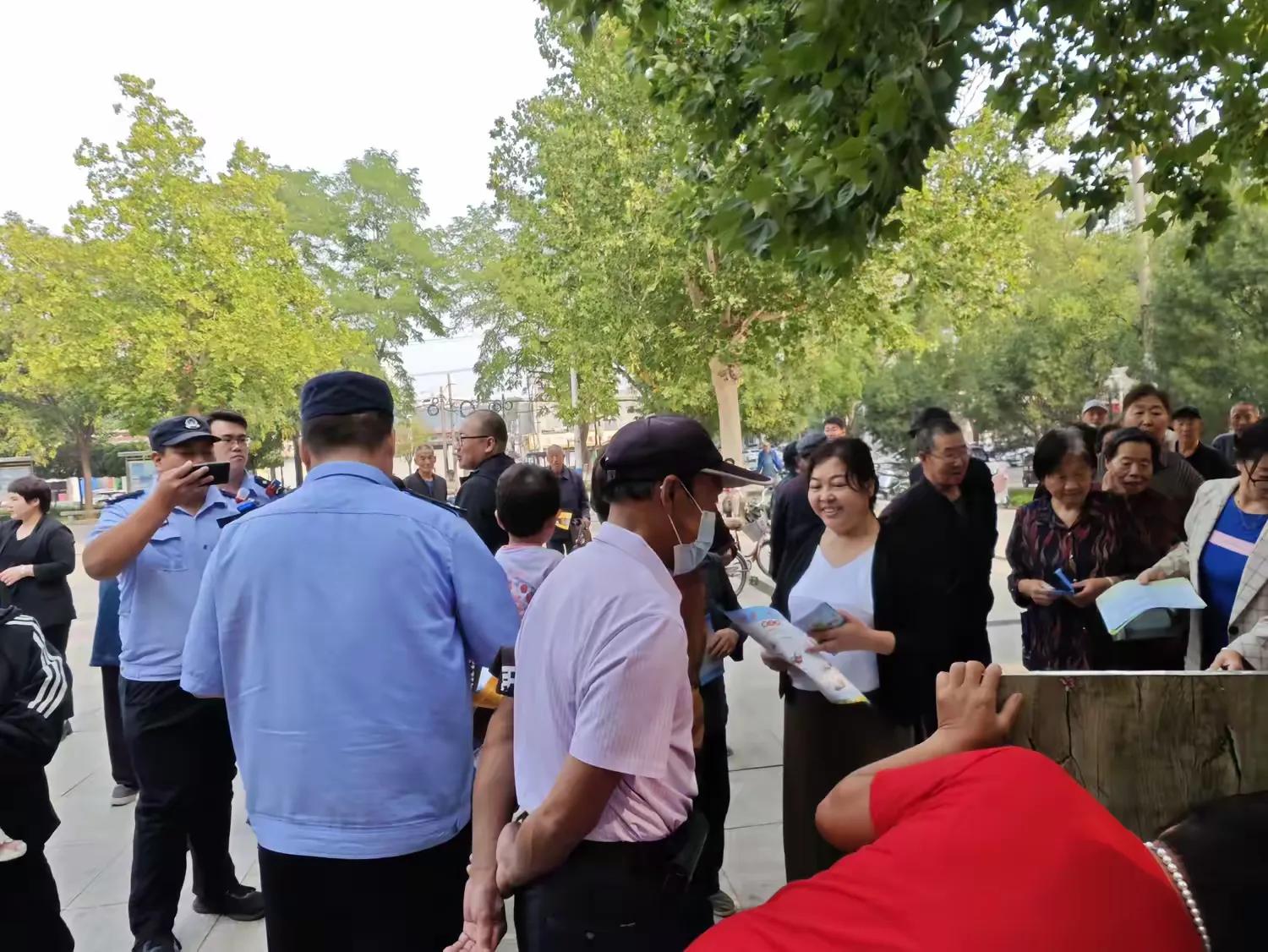 在文艺汇演期间,我镇安全发展办公室联合县司法局、公安部门的工作人员,趁热打铁开始在现场进行司法工作宣传、电信诈骗宣传等,让在场的百姓们,在观看表演之余,学习法律知识。