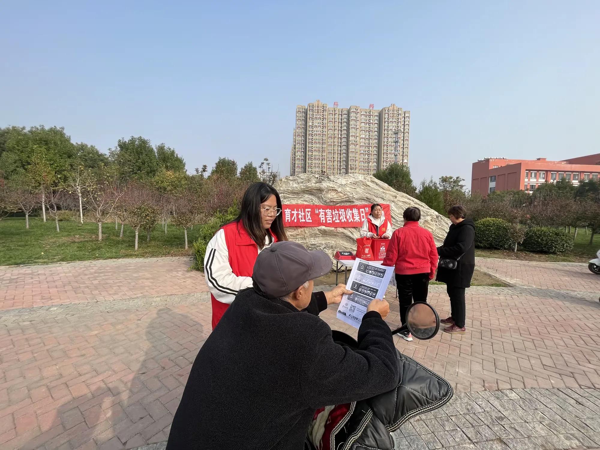 10 月 25 日,星期五,阳光温柔地洒在大地上,秋意正浓,育才社区也在这美好的时节里,奏响了一曲环保的动人乐章——有害垃圾收集日活动拉开帷幕。