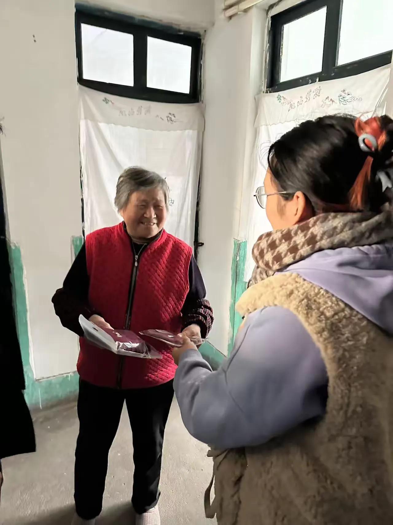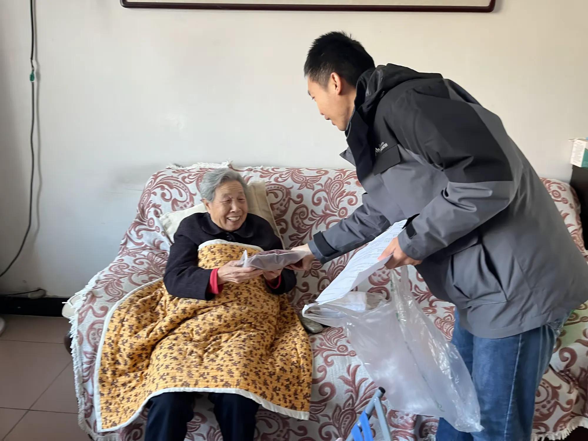 当我们为老人递上帽子、手套时,那一瞬间,老人眼中闪烁的光芒如同夜空中最亮的星。那是感动,是欣慰,也是对温暖的回应。爷爷和奶奶们颤抖着双手接过手套,嘴里不停地说着“谢谢”,那质朴的话语,就像一把火,点燃了我们内心的温情。