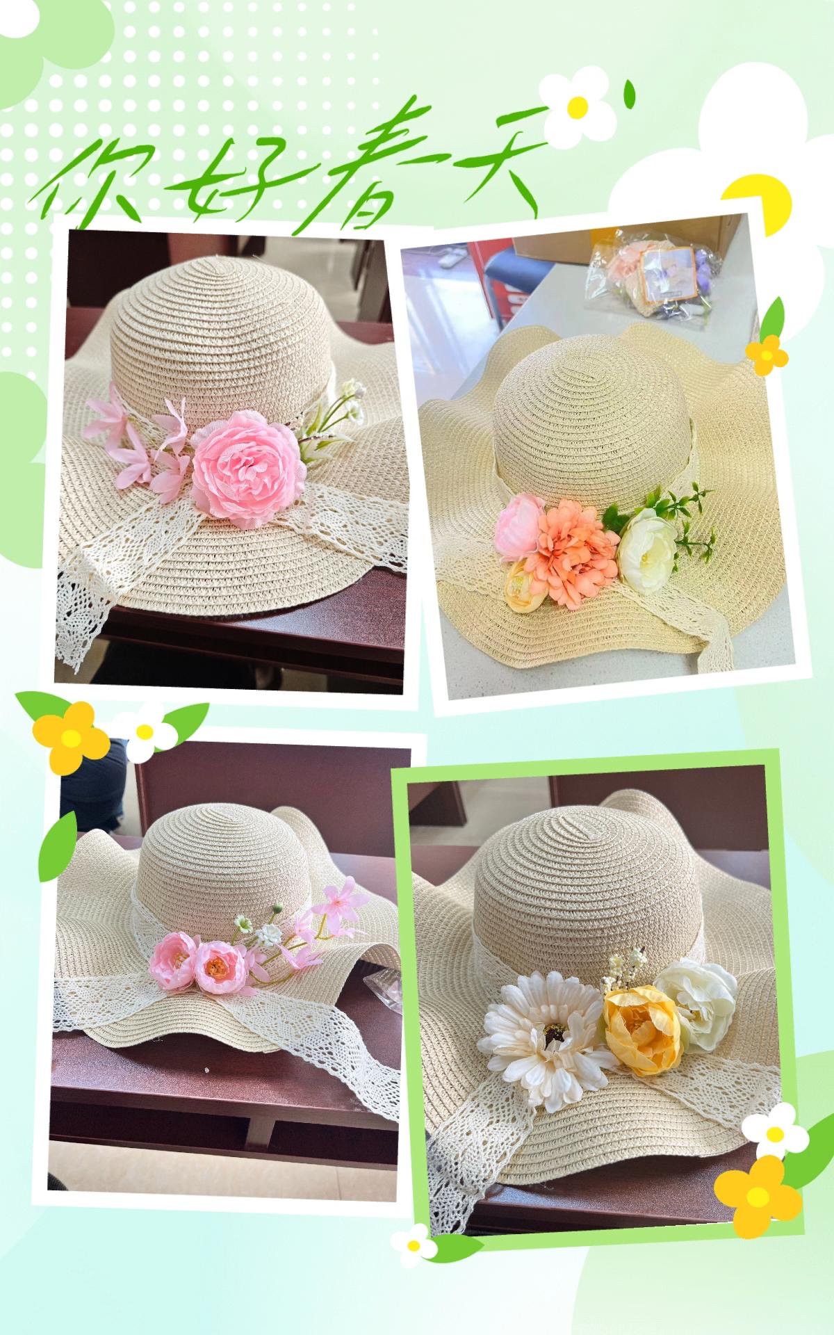 活动现场,准备了丰富的花朵材料包,里面有色彩鲜艳的仿真花朵、嫩绿的枝叶、精巧的花艺铁丝,还有各种装饰配件 。大家一拿到材料包,创作的热情瞬间被点燃。 大家迫不及待地动起手来。有的女士精心挑选花朵,将大朵的玫瑰放在帽子中心,再用小朵的雏菊围绕点缀,用铁丝巧妙固定,不一会儿,一顶优雅迷人的花仙子帽就出现在眼前;还有的把细长的柳枝弯成弧度,搭配上粉色的桃花,制作出充满春日气息的田园风帽子;几位年轻姑娘围坐一起,一边热烈讨论,一边将不同颜色的花朵搭配组合,不一会儿,一顶顶风格独特的帽子就完成了。