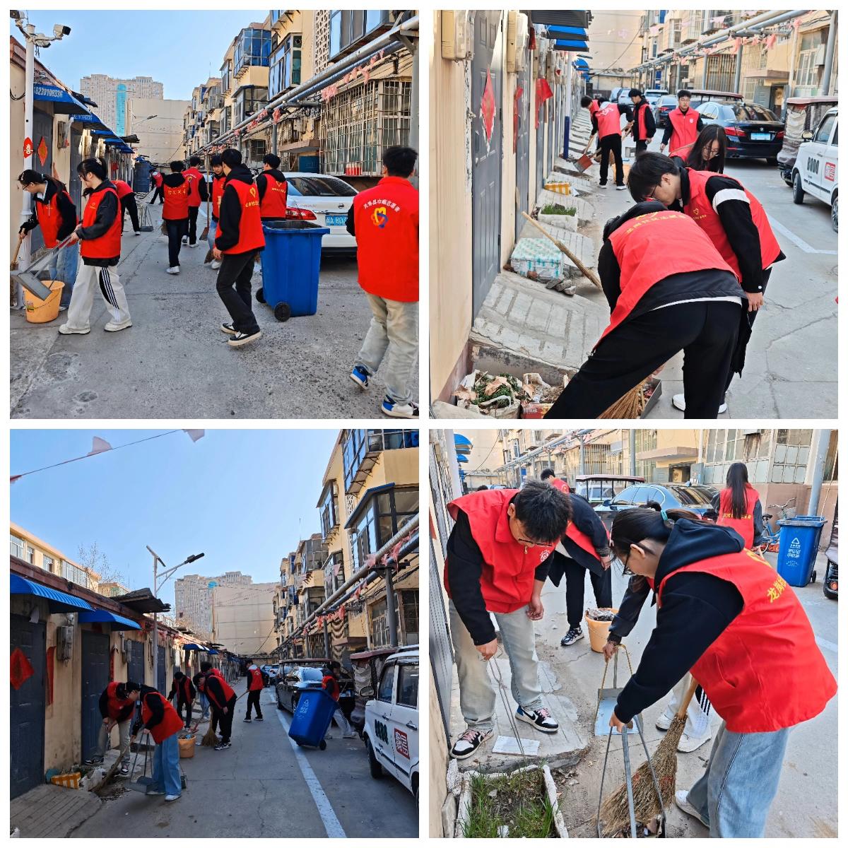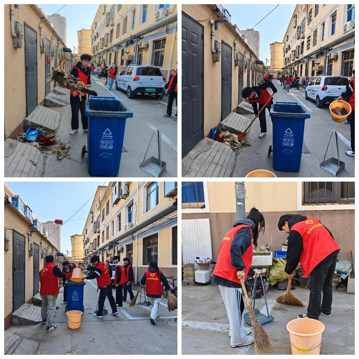 活动当天,阳光正好。大学生志愿者们早早来到小区,身着红马甲,朝气蓬勃。在社区工作人员的有序组织下,大家迅速领取清洁工具,分组行动,热情高涨。 清扫过程中,志愿者们充分发挥不怕脏、不怕累的精神。