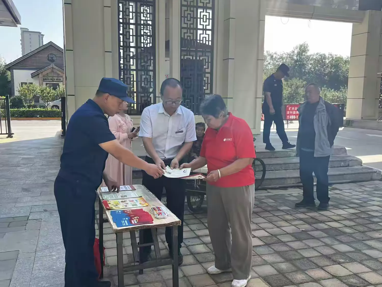 在小区门口等人员密集区域,活动设置了消防宣传定点服务台。消防员则通过发放宣传折页、现场答疑等形式,向过往居民普及火灾报警注意事项、家庭防火“三清三关”(清厨房、清阳台、清楼道,关燃气、关电源、关门窗)等知识。